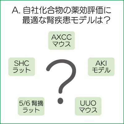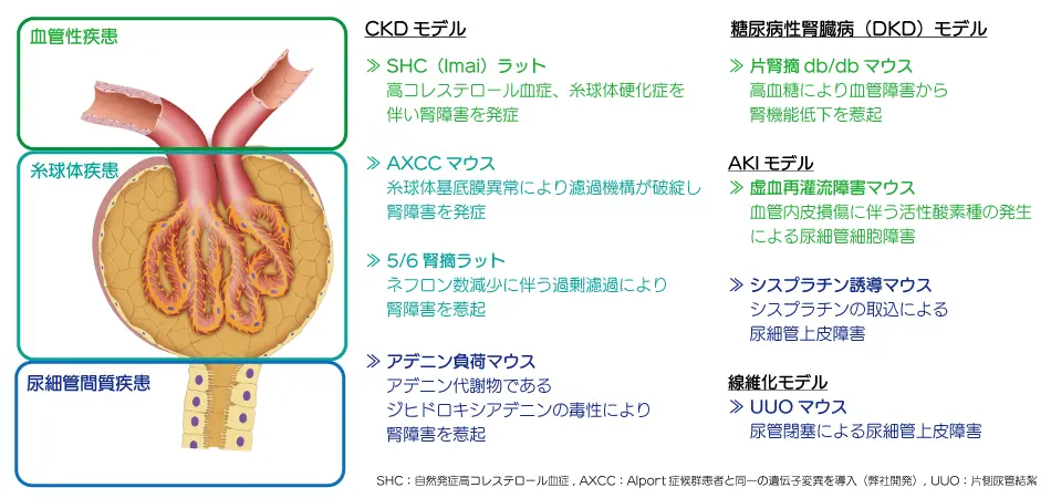 - お客様の課題に対して、最適な慢性腎臓病(CKD)/急性腎障害(AKI)の病態モデルをご提案し、薬効評価を行います。