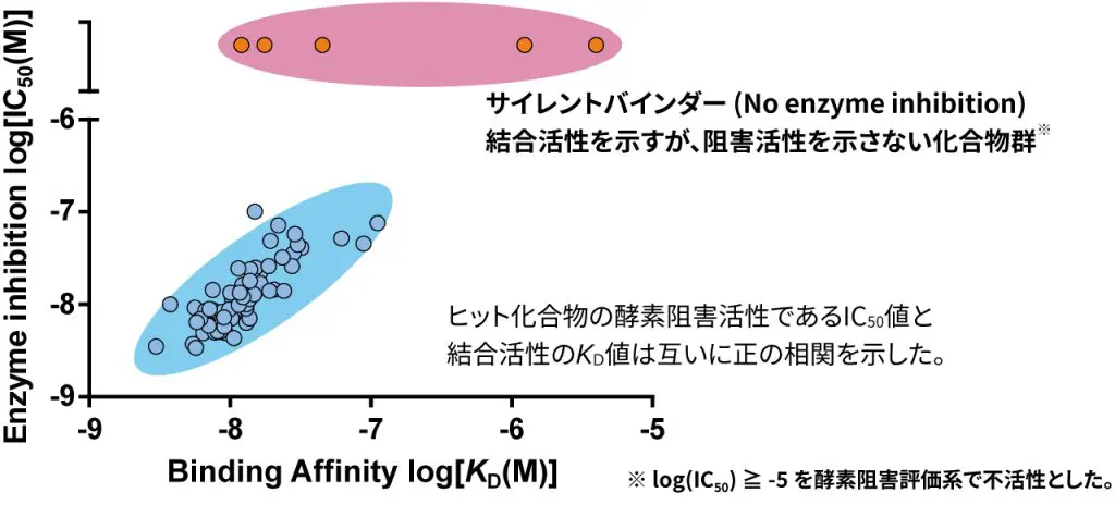 阻害作用を示す化合物だけでなく、結合活性のみを示すサイレントバインダーの取得が可能