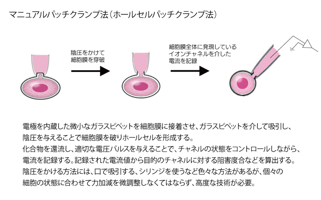 電気生理学的な手法についてですが、まずマニュアルパッチクランプ法について教えてください。