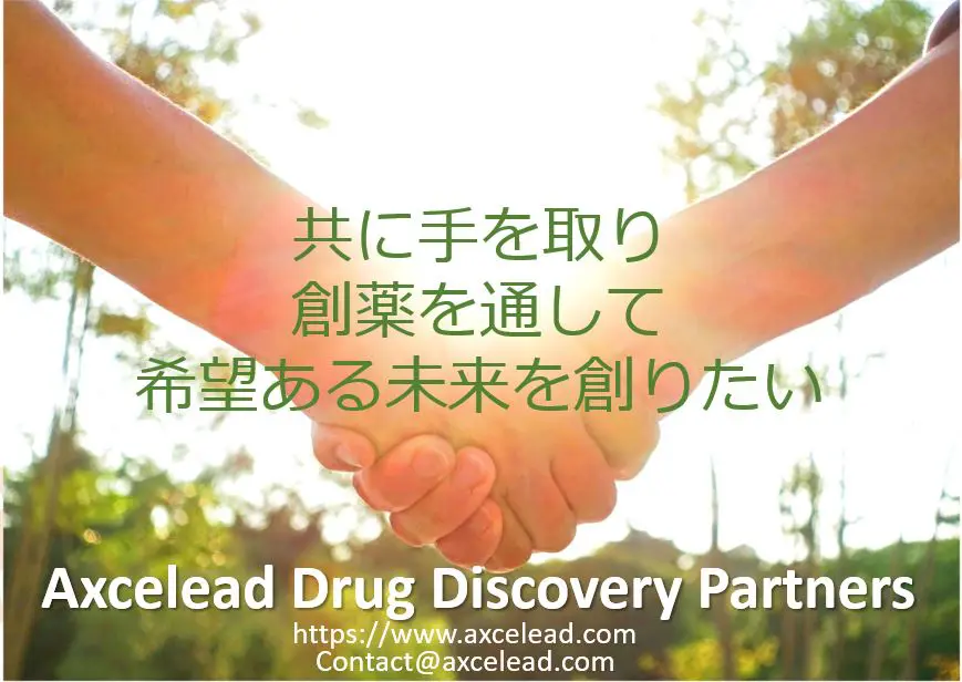 Axceleadのプレゼンテーションの最後を飾る「共に手を取り 創薬を通して 希望ある未来を創りたい」というメッセージがあります。実は、Axcelead創立後、初めてBioJapanという展示会に出展する際、私が考えました。創薬のステップの中で、シーズを探したり、どうやったら薬として世に出るかをディスカッションしたり、解決法を実行したり、お客様とAxceleadがチームとなり創薬を推進したいという想いがあります。そういった想いをギュッと濃縮し、写真撮影をしたメンバーの想いも表したスライドです。これを見るたび、初心に立ち戻ることができ、今でもその想いは変わっていません。