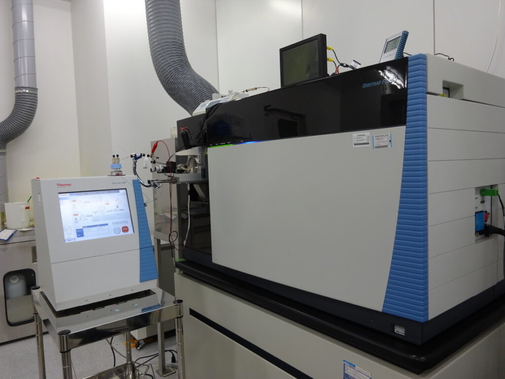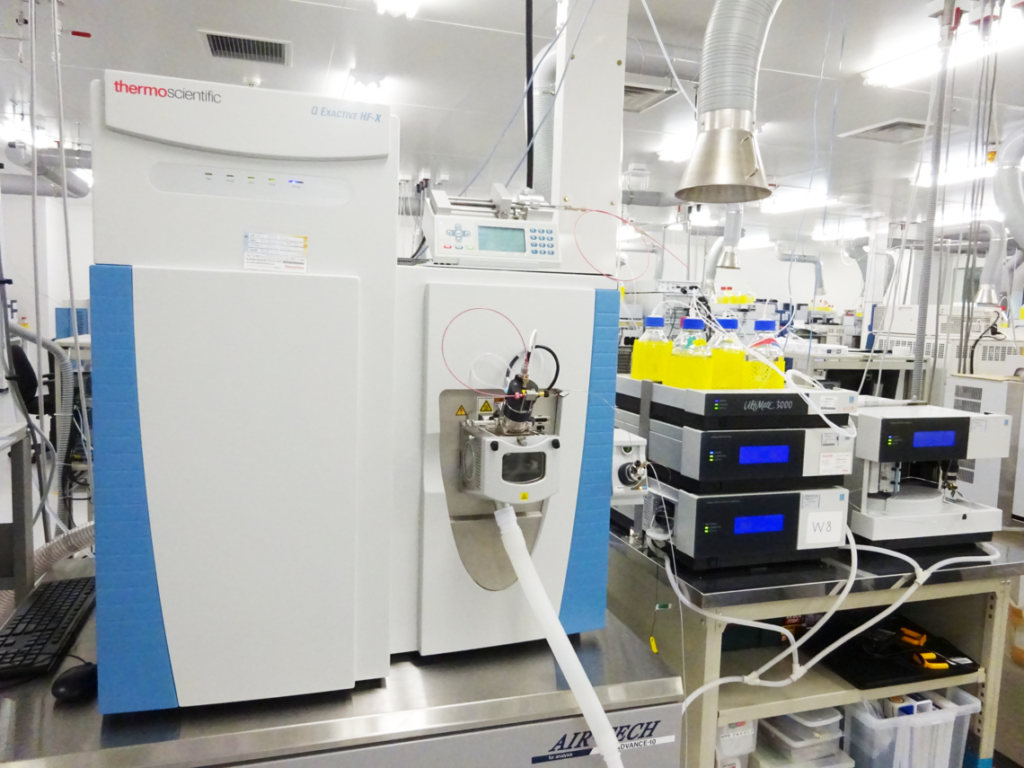 プロテオームに関しては、安定同位体標識技術を取り入れています。サンプル内のタンパク質を切断してペプチドにし(ペプチド分画技術)、その全てのペプチドについて安定同位体で標識する技術です。この技術のおかげで、全てのペプチドに対して、データの基準となるシグナルを揃えることができるので、基準に対して何倍増減したか、様々なサンプルと比較評価することができます。コストがかかる技術ではありますが、データの信頼性、比較精度を担保するために取り入れました。
