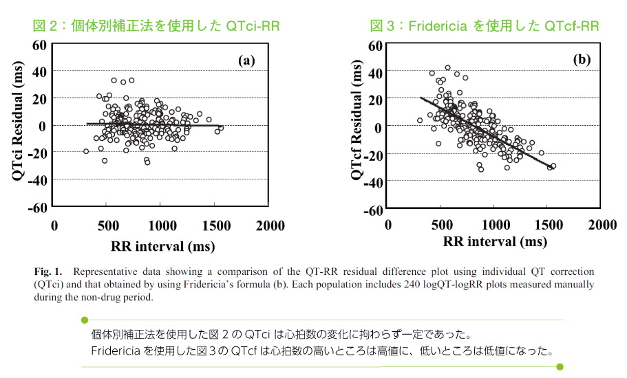 解析方法も重要ですね。 例えば、QT間隔というのは心拍数に依存していて、心拍数が遅ければQT間隔は長くなり、早ければQT間隔は短くなります。
