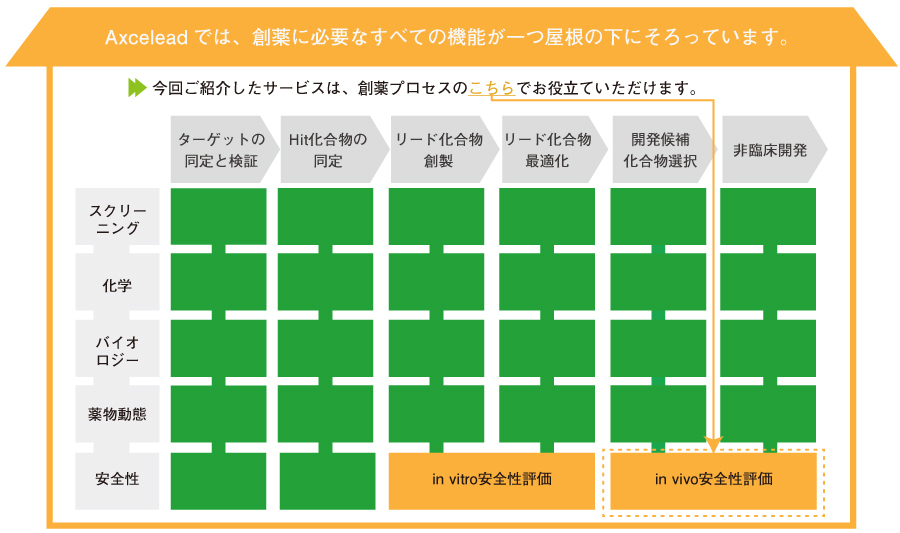 そうですね。これまで製薬会社で導入品の評価もしてきましたので、製薬会社の方がどういったところに注目しているか、どういったデータを重視しているか凡そ分かります。そういった視点でも、お客様の試験計画などをサポートできたらと思います。導出するステージにもよりますが、例えば、GLP試験を始める前の段階でも、それまでに実施したin vitroとin vivoのデータから、GLP試験で起こるリスクをある程度予測できます。そこはin vitroを担当している高砂さんとデータを統合的に評価し、お客様のご要望も踏まえて、以後の試験計画やデザインをご提案させて頂きます。