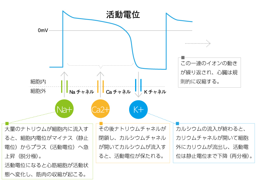 これは心電図のQT間隔が伸びるか伸びないかを予測するためのアッセイです。通常、in vitroでhERG K+チャネルの阻害が見られたら、次の段階としてイヌやサルの心電図実験でQT間隔の延長があるかを調べます。 ただ、動物実験はやはりコストが高い。そこで、vitroとvivoの間を繋ぐもう一つのin vitro試験として、hiPS心筋細胞を使ったMEAアッセイがあり、ヒト心室筋の興奮を担う活動電位(正式には細胞外電位)を測定できます。この試験を行えば、g単位の化合物を使って百数十万円もの動物心電図実験をやらなくても、試験管の中でQT延長リスクが評価できるんです。