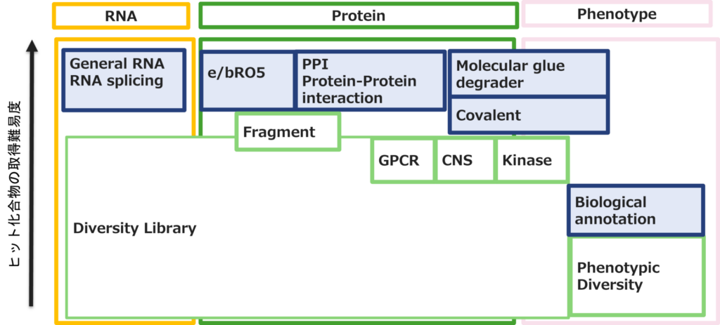 • これまで十分にカバーできていなかった標的(RNA など)、難ターゲット(PPI など)に対する打ち手となるライブラリを拡張