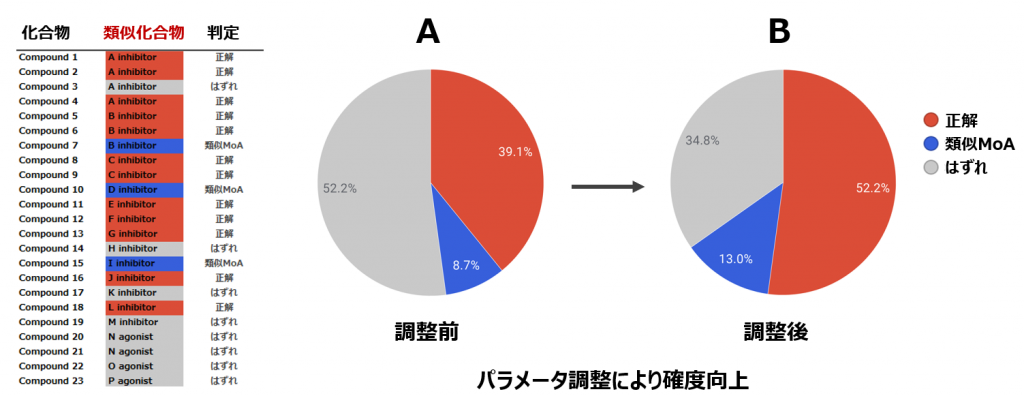 - 化合物特異的なgene signatureを用いて、ターゲット分子やMoAを推定します。