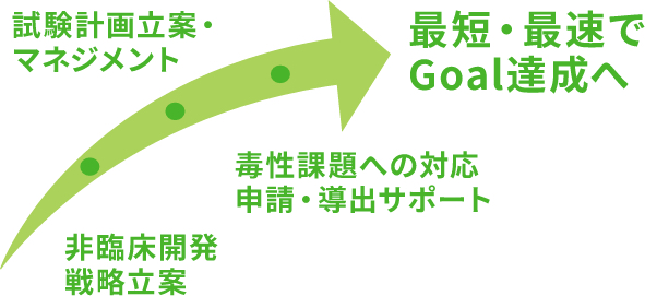 非臨床開発戦略立案 試験計画立案・マネジメント 毒性課題への対応申請・導出サポート 最短・最速でGoal達成へ