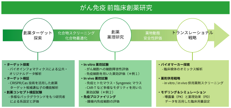 がん免疫領域の創薬研究で直面する課題に応じて、最適なソリューションを提案・実行し、がん免疫領域の創薬を前進・加速させます。