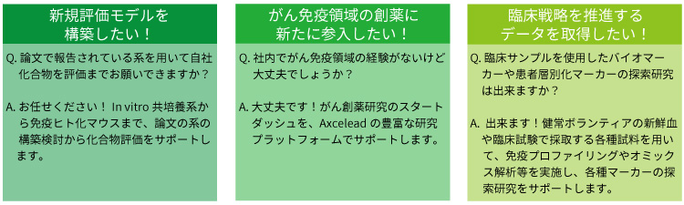 がん免疫治療薬の創薬・病態研究でお困りのことがございましたら、是非Axceleadにお問い合わせ下さい!