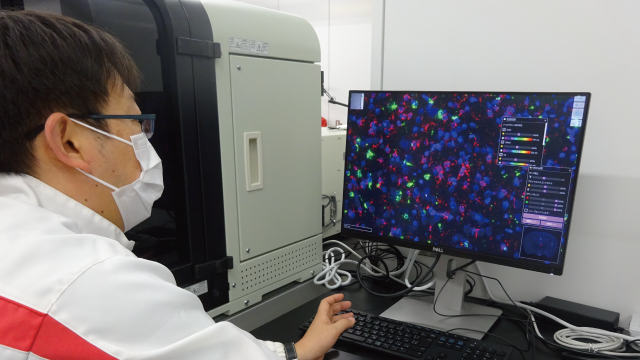 2017年に武田薬品工業からAxcelead Drug Discovery Partnersへ転籍し血液検査や標本作製(免疫染色や画像解析なども)、そして病理組織検査を行うチームをリードしています。それぞれの技術を目当てに異なるお客様からご依頼を受けることもありますが、薬効試験や毒性試験といった場面ではひとつのチームであることを活かし、これらの技術を総合して動物の状態により深く迫れる(病態を理解する)ことに面白さを感じます。