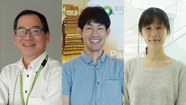 冨原裕美:名古屋大学大学院生命農学研究科博士課程前期修了後、協和キリン株式会社にて、抗体やLipid nanoparticle (LNP) のプロジェクトを担当。2019年、Axcelead Drug Discovery Partners株式会社に入社。核酸やLNPの動態評価に従事。